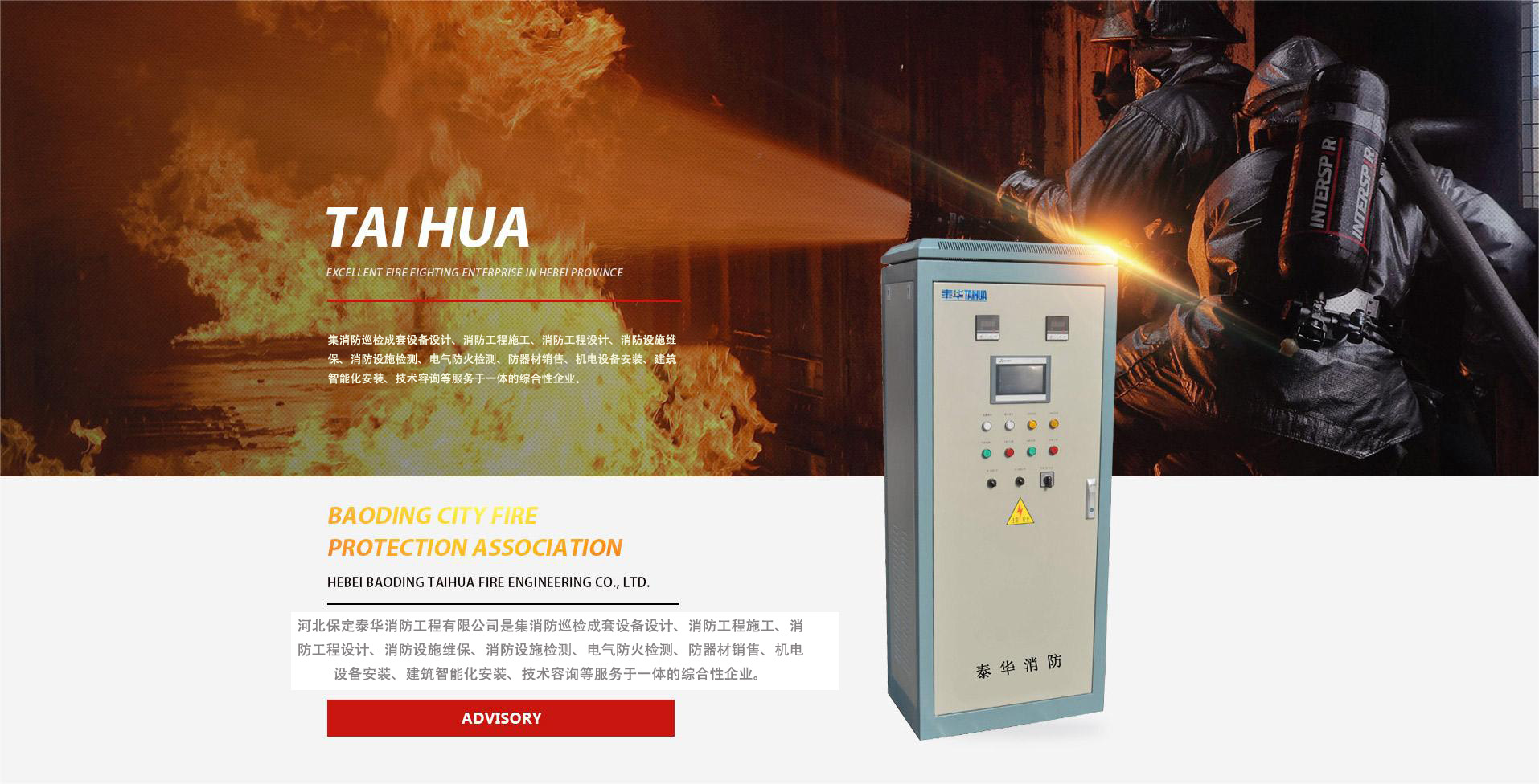 河北保定泰華消防工程有限公司是集消防巡檢成套設(shè)備設(shè)計(jì)、消防工程施工、消防工程設(shè)計(jì)、消防設(shè)施維保、消防設(shè)施檢測(cè)、電氣防火檢測(cè)、防器材銷售、機(jī)電設(shè)備安裝、建筑智能化安裝、技術(shù)容詢等服務(wù)于一體的綜合性企業(yè)。